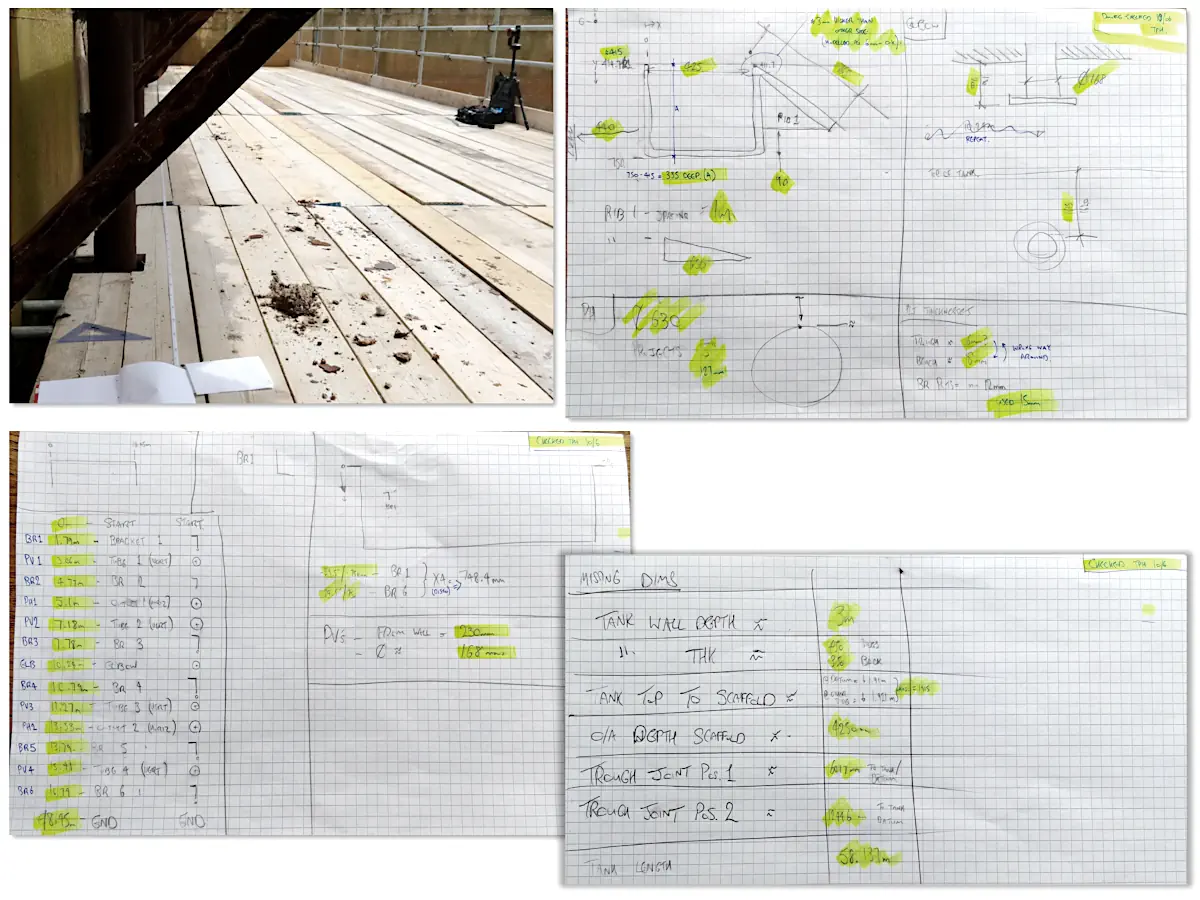 A water-treatment refurbishment required replacement scum beaches within an out-of-service clarifier tank. The existing assembly was heavily corroded carbon steel, with little useful information remaining beyond what could be observed and measured on site.